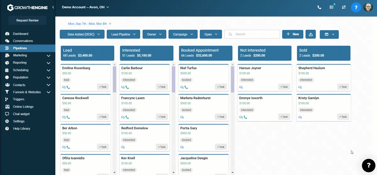 Keep real-time and fully customized calendars for all your team in one place. GrowthEngine will even send out all your appointment reminders with ZERO work on your end so your show-up rates go through the roof! Even integrates with Google Calendar.